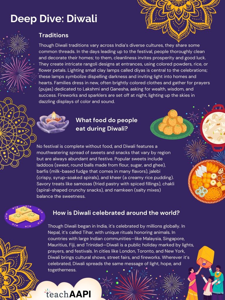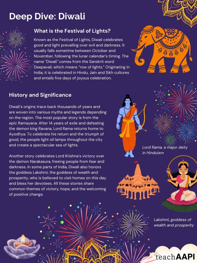 Originating in India, Diwali is celebrated in Hindu, Jain and Sikh cultures. Known as the Festival of Lights, Diwali entails five days of celebration. Though Diwali is celebrated differently across cultures, a common theme of good and light prevailing over evil and darkness connects the three religions. Dive deeper with us here!